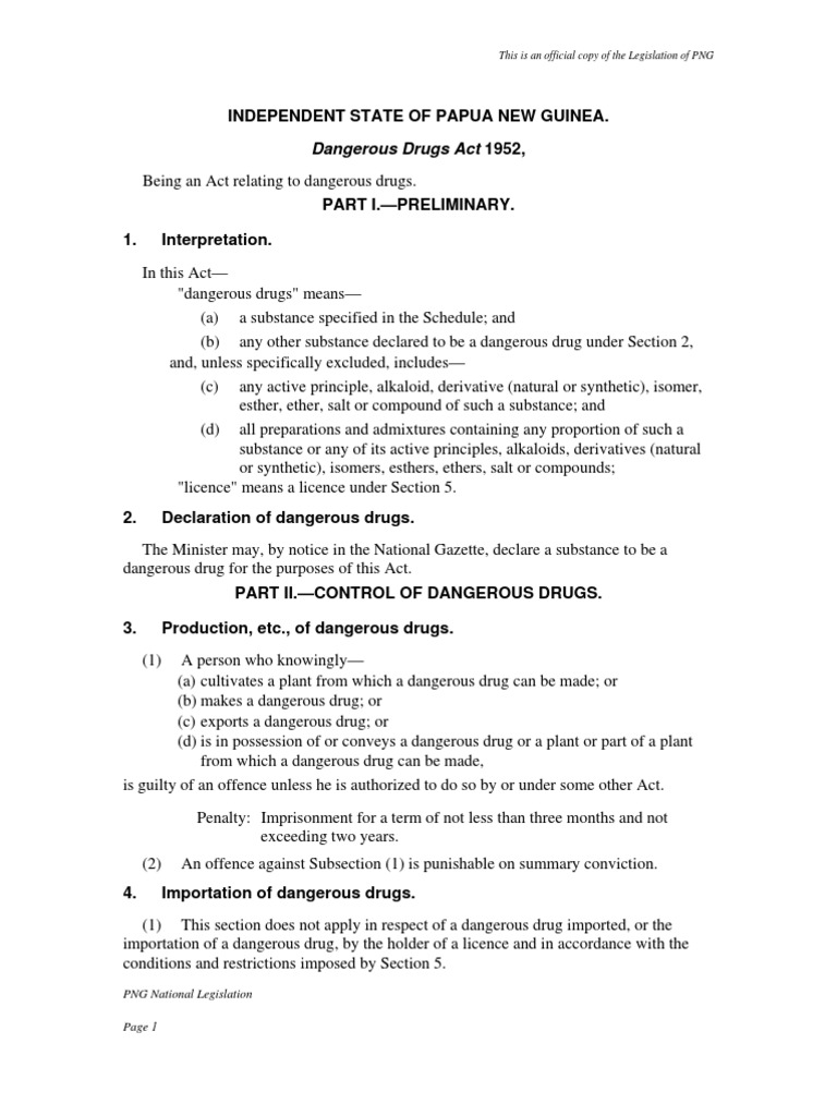 DANGEROUS DRUGS ACT 1952 Click here to see Annotated Statutes of this Act 1Short title Part I INTERPRETATION AND DEFINITIONS SECTION 2Interpretation 3Appointment of Drug Enforcement Officers Part II CONTROL OF RAW OPIUM COCA LEAVES POPPY-STRAW AND CANNABIS SECTION. You must be logged in to post a review. 17th July 1980 Date of publication in the Gazette of.